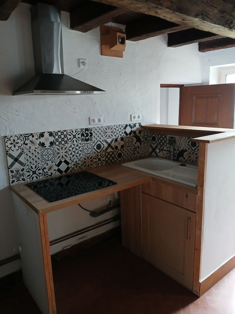 Au coeur d'une propriété -Maison rurale de 60 m² offrant séjour avec cheminée, cuisine avec plaques, hotte et frigidaire, pièce, à l'étage : dégagement chambre salle de bains. Dépôt de garantie 550 euros. 200 euros de provisions sur charges comprenant : OM, ent. PAC, chauffage, eau. DPE: F Libre de suite. 324 euros d'honoraires à la charge du locataire au titre des honoraires de visite, de constitution de dossier, de rédaction du bail et 180 euros d' état des lieux d'entrée