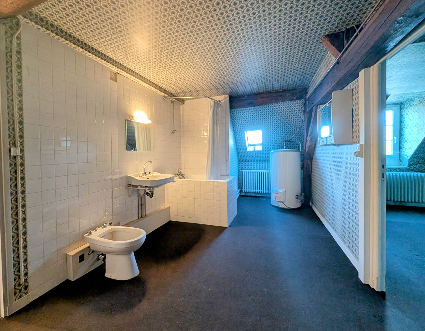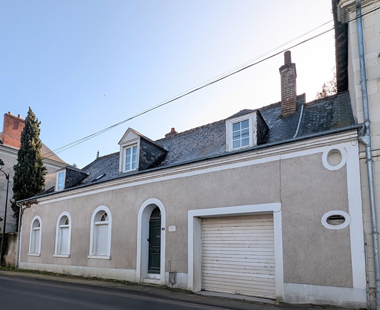 AMBOISE - Maison ancienne comprenant en rez-de-chaussée : entrée traversante - salon/séjour avec cheminée, cuisine, chambre, salle d'eau, buanderie - Au 1er : vaste palier, trois chambres, salle de bains, 2 greniers - Garage - Jardin clos de murs avec petite dépendance et cave (5.00 % honoraires TTC à la charge de l'acquéreur.)