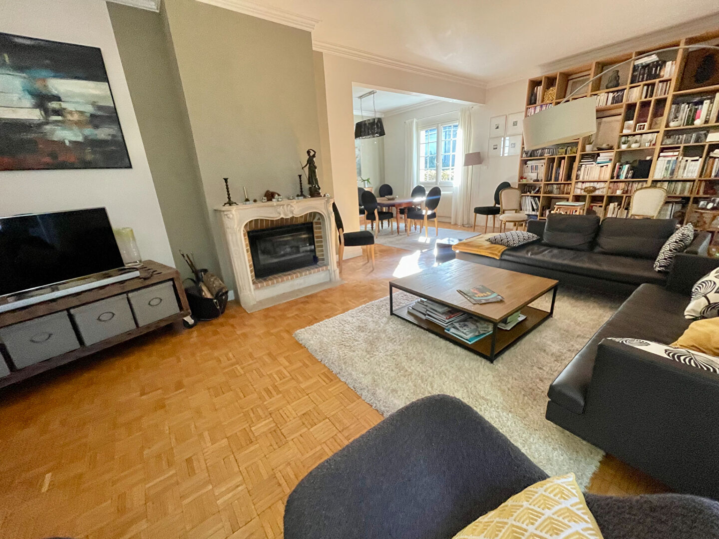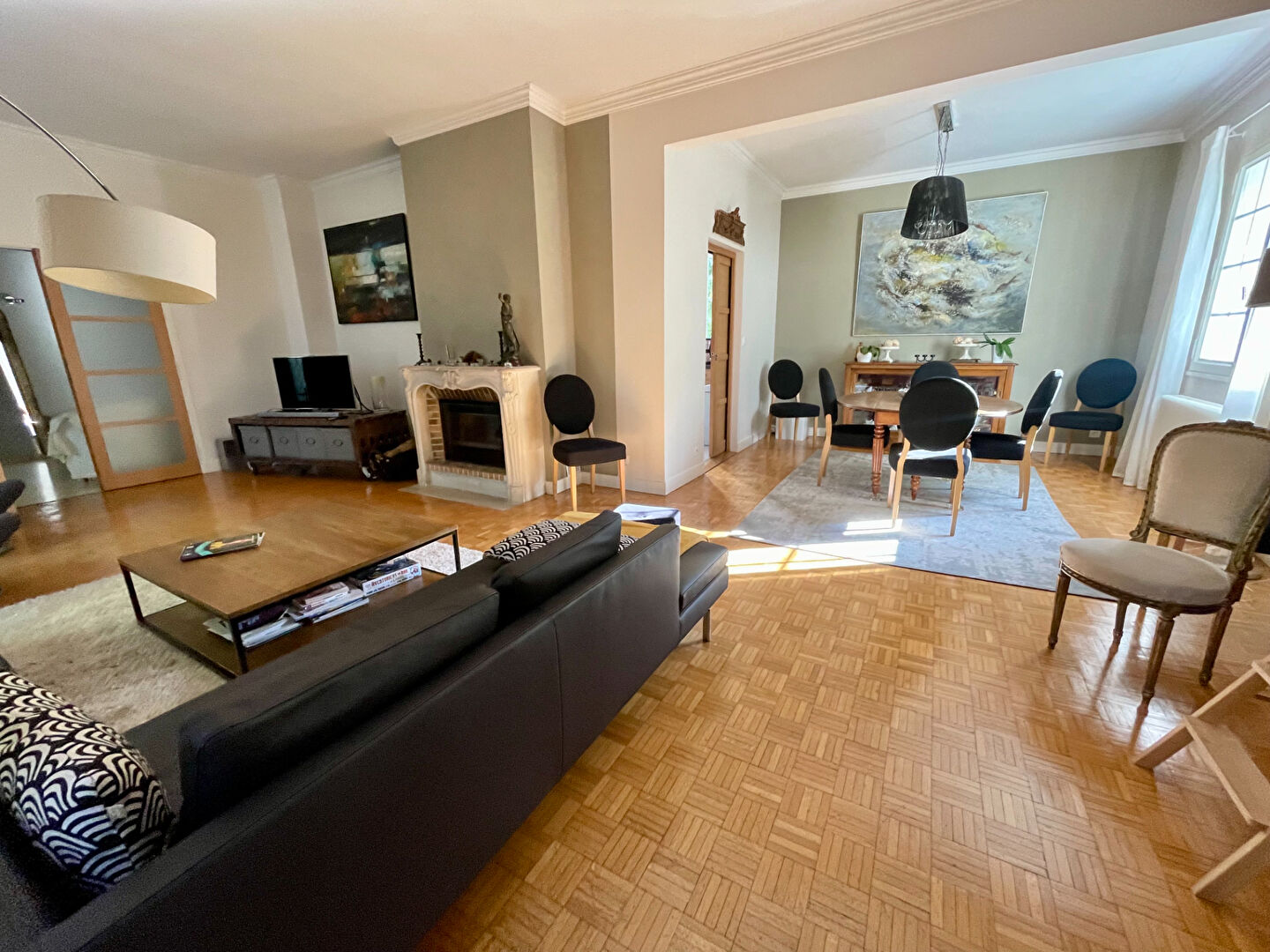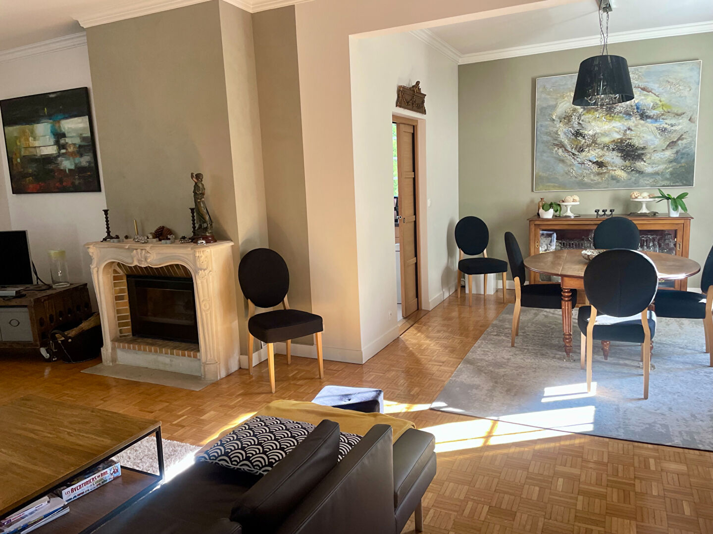 Confortable maison édifiée dans un environnement boisé, à proximité des commerces, vous y trouverez confort, volume et charme. Construite avec des matériaux de qualité , vous entrez dans un hall desservant un salon séjour en L avec cheminée en pierre, corniches et acces à une vaste terrasse de 170 m² , cuisine indépendante équipée, 2 chambres, salle d'eau, dressing et buanderie. A l'étage desservi par un escalier en travertin, 4 belles chambres et une salle de bains complète . Pour compléter un Sous sol total dont une partie aménagé: en cuisine d'été et salle de jeux , garage, cave .. Le terrain arboré est clos avec divers espaces dont et un détente piscine , et un parking voitures (4.69 % honoraires TTC à la charge de l'acquéreur.)