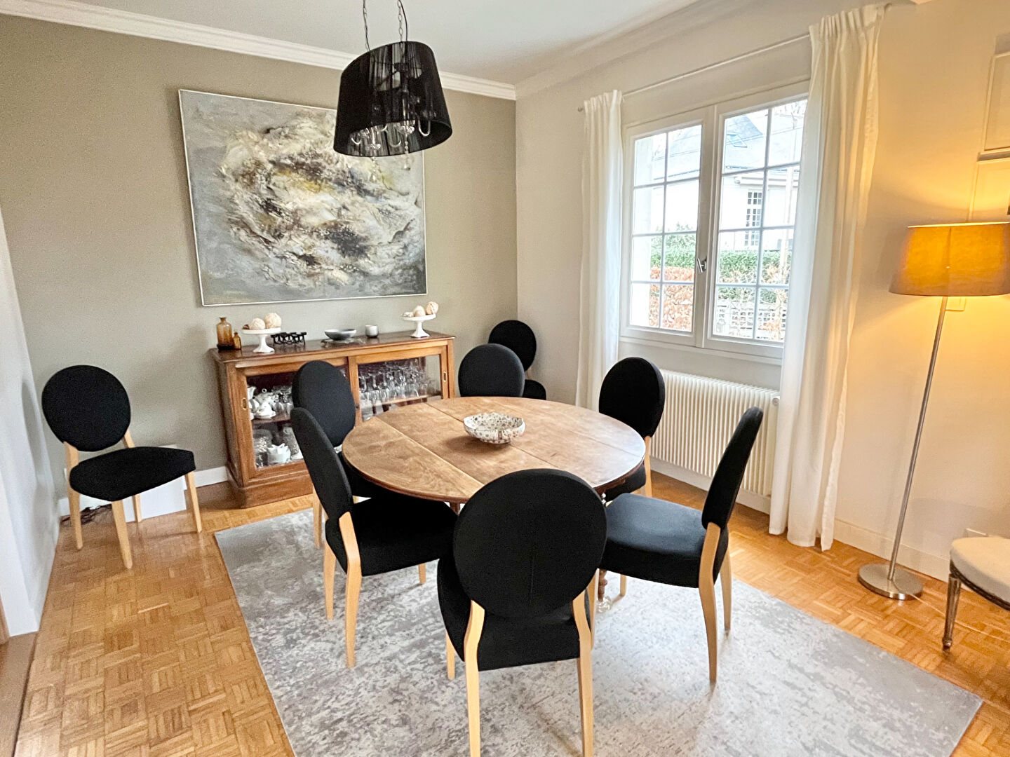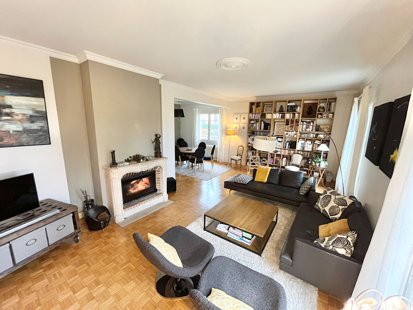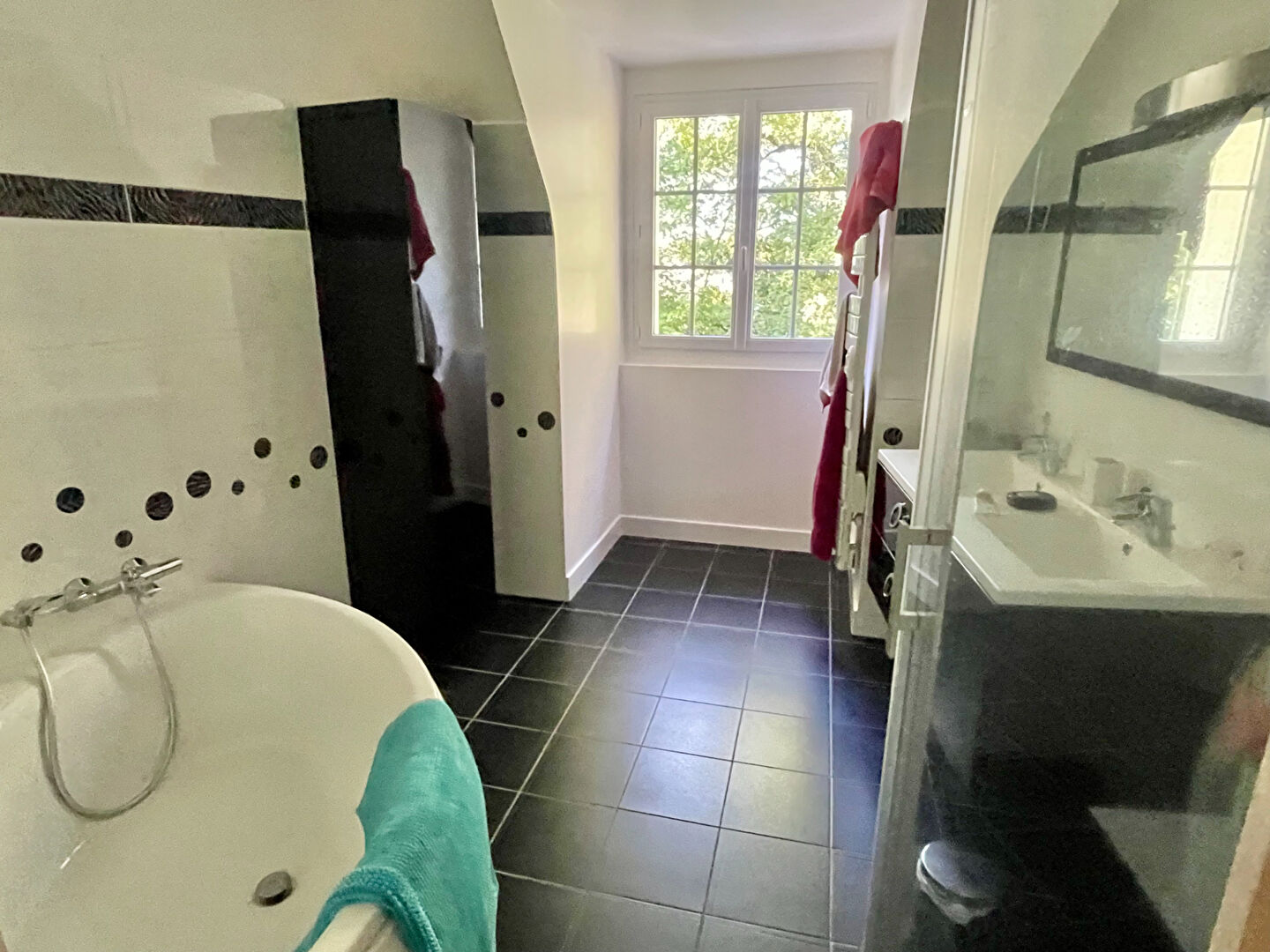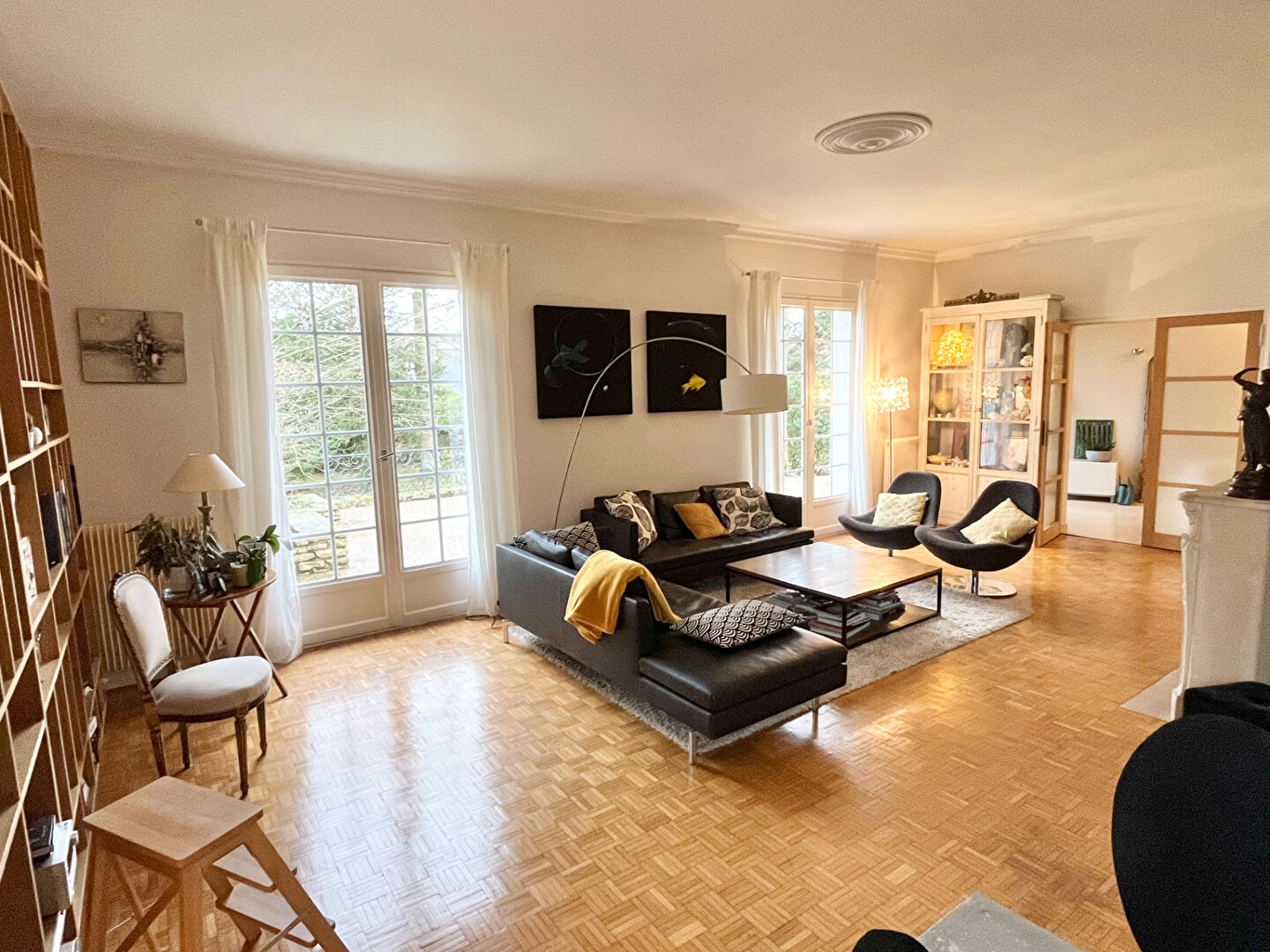 Confortable maison édifiée dans un environnement boisé, à proximité des commerces, vous y trouverez confort, volume et charme. Construite avec des matériaux de qualité , vous entrez dans un hall desservant un salon séjour en L avec cheminée en pierre, corniches et acces à une vaste terrasse de 170 m² , cuisine indépendante équipée, 2 chambres, salle d'eau, dressing et buanderie. A l'étage desservi par un escalier en travertin, 4 belles chambres et une salle de bains complète . Pour compléter un Sous sol total dont une partie aménagé: en cuisine d'été et salle de jeux , garage, cave .. Le terrain arboré est clos avec divers espaces dont et un détente piscine , et un parking voitures (4.69 % honoraires TTC à la charge de l'acquéreur.)