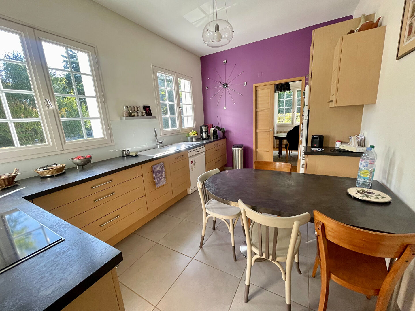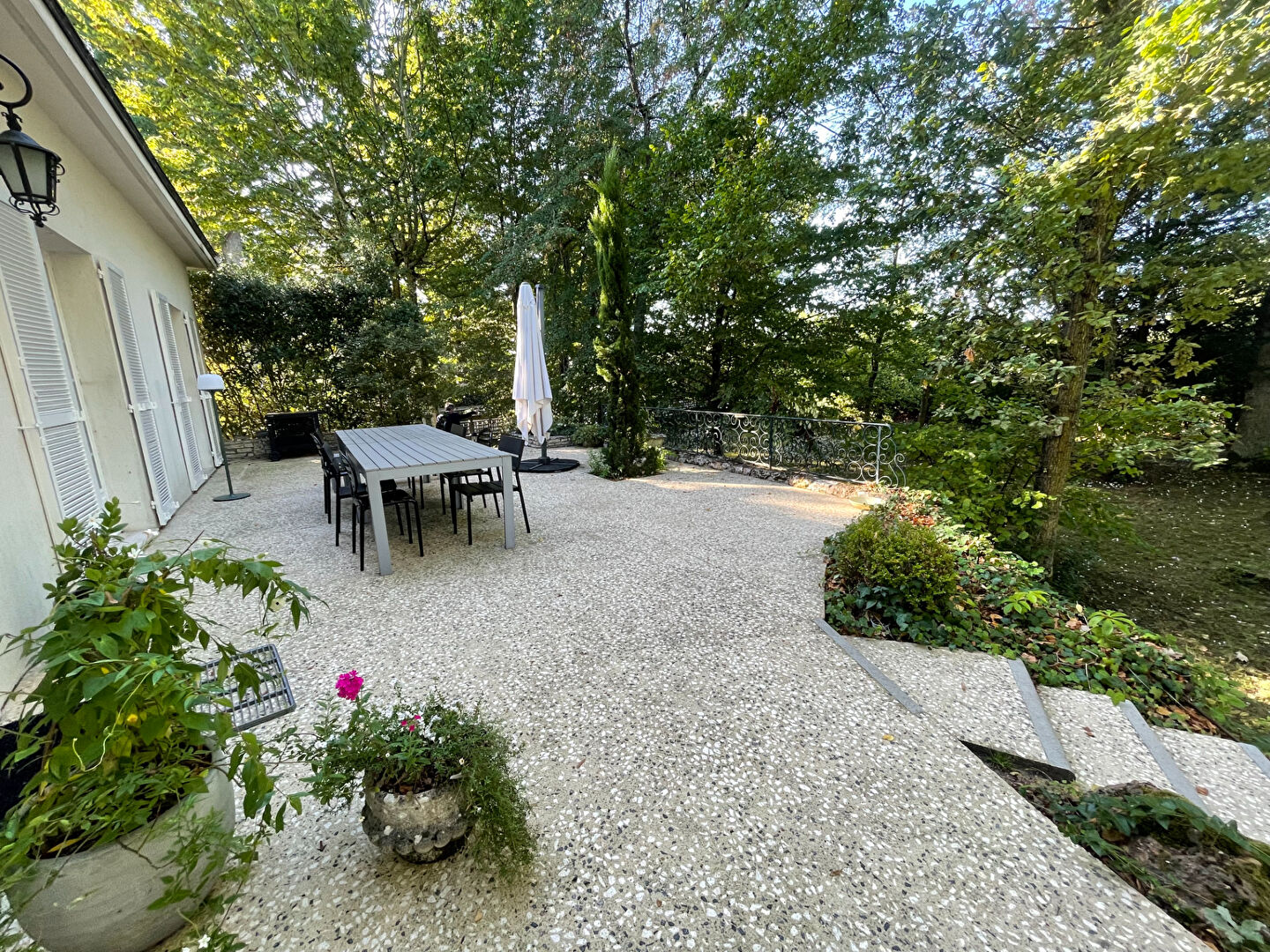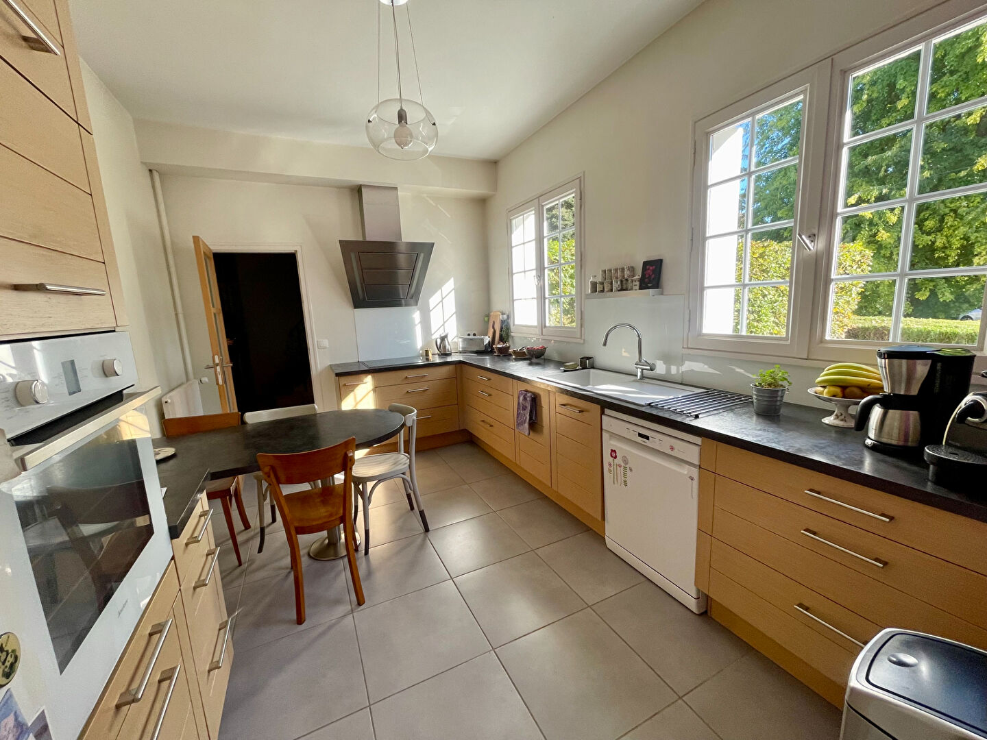En Exclusivité dans votre agence Confortable maison située dans un bourg avec tous commerces et environnement boisé , vous y trouverez confort, volume et charme. Construite avec des matériaux de qualité , vous entrez dans un hall desservant un salon séjour en L avec cheminée en pierre, corniches et accès à une vaste terrasse de 170 m² , cuisine indépendante équipée, 2 chambres, salle d'eau, dressing et buanderie. A l'étage desservi par un escalier en travertin, 4 belles chambres et une salle de bains complète . Pour compléter un Sous sol total dont une partie aménagé: en cuisine d'été et salle de jeux , garage, cave .. Le terrain arboré est clos avec divers espaces dont et un détente piscine , et un parking voitures (4.69 % honoraires TTC à la charge de l'acquéreur.)