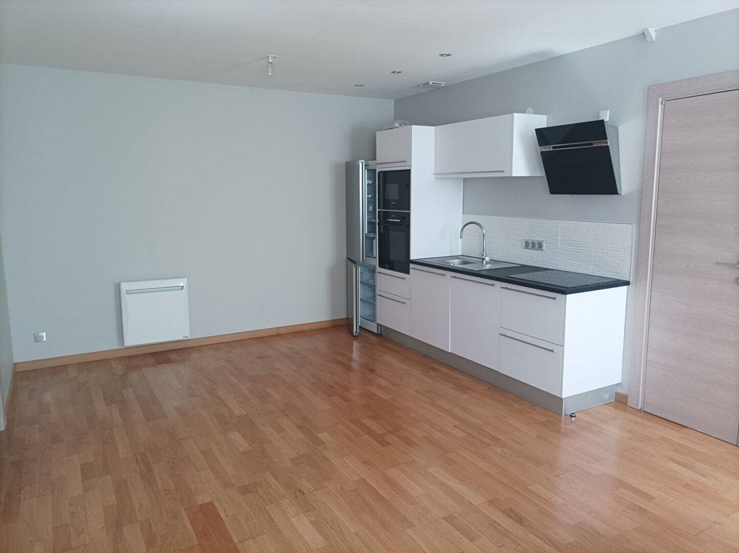 HYPER CENTRE - Appartement au 1er étage droite composé d'un séjour/chambre, cuisine aménagée et équipée (four, plaque, hotte, réfrigérateur, lave-linge séchant), salle d'eau avec wc - BELLES PRESTATIONS - Prov. eau et OM dans les charges -